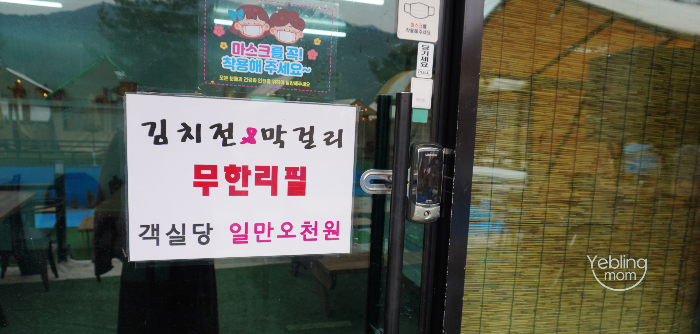 객실당!!! 1만 5천원이면 김치전과 막걸리를 마음껏 즐길 수 있답니다 ^^