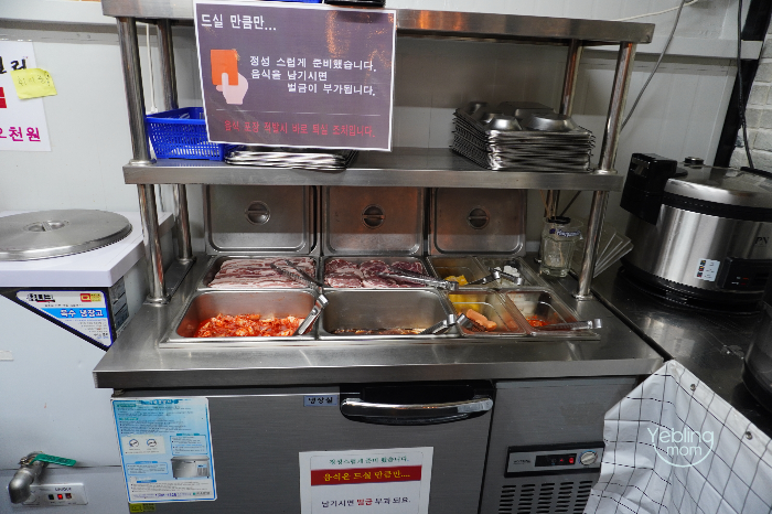 김치, 상추, 쌈장, 마늘, 고추, 쌀밥 등등 모두 준비해 주시구요.